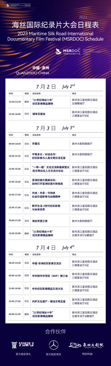 據(jù)悉,2023海絲國(guó)際紀(jì)錄片大會(huì)有兩大特點(diǎn):第一,國(guó)際合作。作為國(guó)內(nèi)聚焦國(guó)際交流合作、打造高質(zhì)量紀(jì)錄片推介的節(jié)展,大會(huì)作品集展映、項(xiàng)目推薦、主題研討、文化體驗(yàn)于一體,此次大會(huì)共邀請(qǐng)到7位國(guó)際A類紀(jì)錄片節(jié)展主席、12個(gè)國(guó)家電視臺(tái)制播機(jī)構(gòu)代表共同參與,開展活動(dòng)7大類、15場(chǎng),其中包括5個(gè)國(guó)際合拍項(xiàng)目合作意向簽署儀式、11個(gè)中外制作中項(xiàng)目(WIP)提案,還有19部中外精品紀(jì)錄片展映。大會(huì)充分對(duì)接中外紀(jì)錄片制播節(jié)展資源,增進(jìn)中外創(chuàng)作者交流,促進(jìn)紀(jì)實(shí)影像的國(guó)際合作。第二,海絲特色。泉州作為聯(lián)合國(guó)教科文組織唯一承認(rèn)海上絲綢之路起點(diǎn)城市,大會(huì)落地泉州,充分融合了各種泉州要素,如以泉州為主題的紀(jì)錄片為案例探討文化遺產(chǎn)保護(hù)的論壇活動(dòng)、海絲世遺之夜、發(fā)現(xiàn)海絲人文之旅、國(guó)際傳媒人士調(diào)研、泉州非遺展示互動(dòng)區(qū)等,讓海內(nèi)外嘉賓沉浸體驗(yàn)宋元中國(guó)世界海洋貿(mào)易中心的魅力。