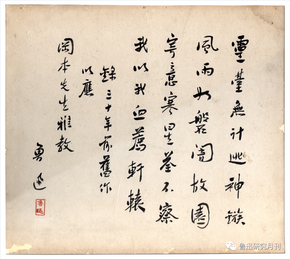 1932年,魯迅贈(zèng)岡本繁(“自題小像”),北京魯迅博物館藏