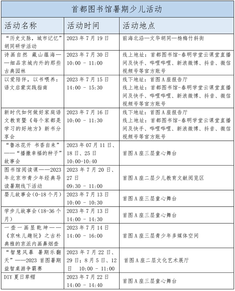 少兒活動(dòng)看哪里?來首都圖書館樂讀童年夏日