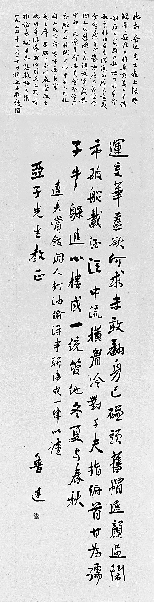 魯迅得此書法的時(shí)間是1915年6月17日。當(dāng)時(shí)章太炎被囚禁在北京,作為弟子,他多次去探望老師,可以看出彼此的感情之深。后來(lái)他在給友人曹聚仁的信中寫道:“師如非罪而遭冤,卻不可乘機(jī)下石,以圖快敵人之意而自救?!濒斞笇?duì)章太炎一直是非常熱愛(ài)和敬重的。