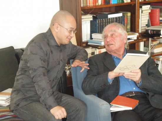 2010年,黃燎宇(左)在瓦爾澤家中與瓦爾澤交談。攝影:喻纓