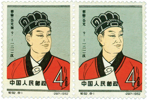 紀(jì)—92中國古代科學(xué)家(第二組)蔡倫郵票錯版(左)與正版(右)