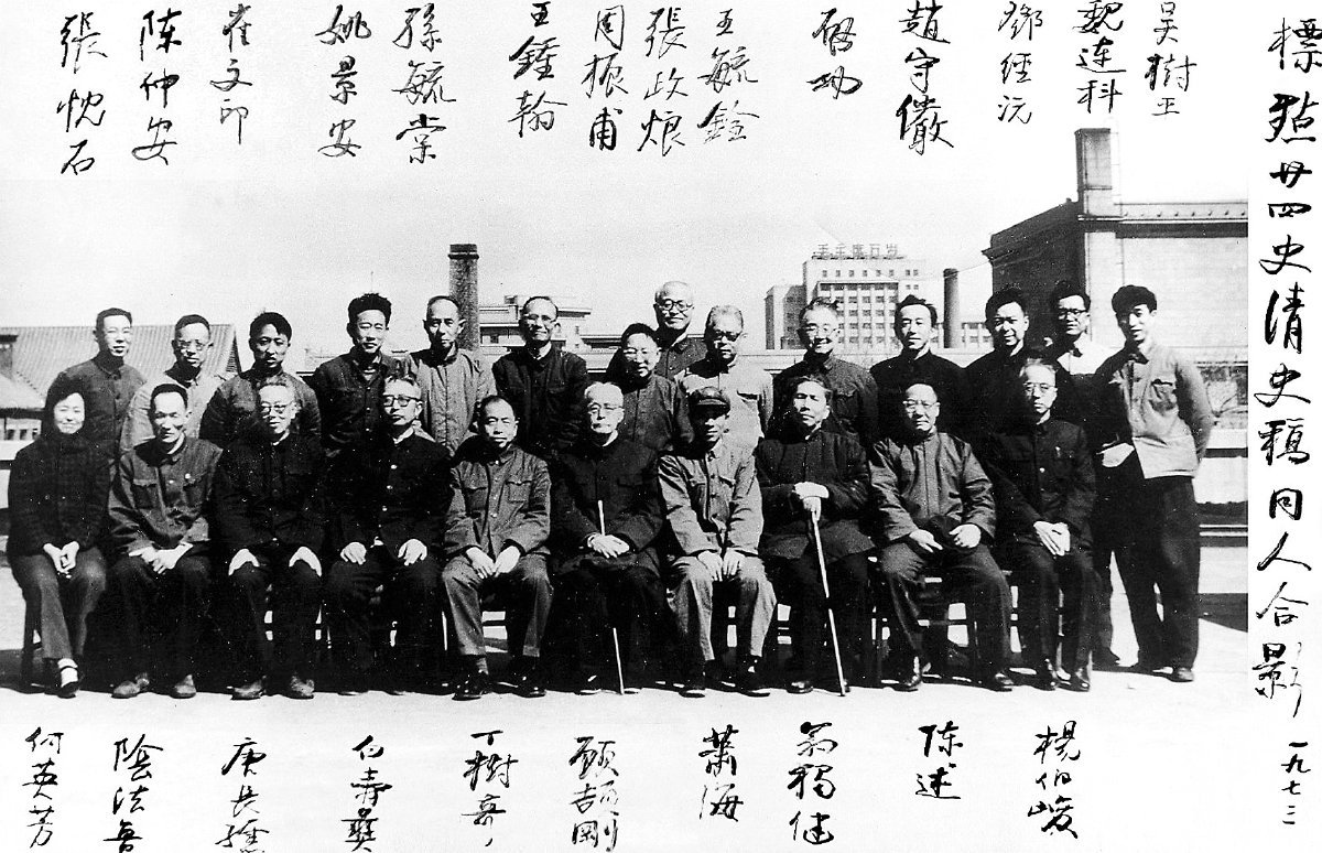 《清史稿》標(biāo)點(diǎn)人員合影,后排左五為孫毓棠。名字由啟功手寫。