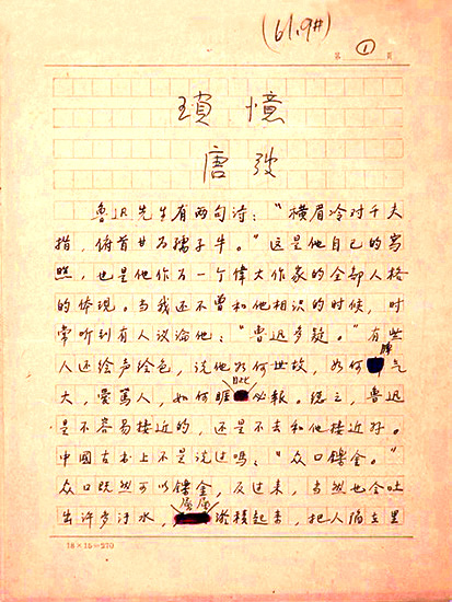 我在中學(xué)時就曾學(xué)過《瑣憶》這篇文章,時隔多年,再次邂逅《瑣憶》,卻是在中國現(xiàn)代文學(xué)館館藏珍品中看到唐弢的手書原稿。伴隨著少年時的記憶,我再次重讀了收錄在高中課本上的經(jīng)典文章。雖然手稿上布滿修改和圈涂的痕跡,細細辨認,慢慢讀來,卻也有一番久別重逢的親切感。那隨處可見的涂抹圈畫和比比皆是的修改筆跡,讓我在感受到作者字斟句酌、精益求精的嚴謹之余,倒是比少年時更讀懂了作者的良苦用心和他對魯迅先生的深切懷念之情。【詳細】