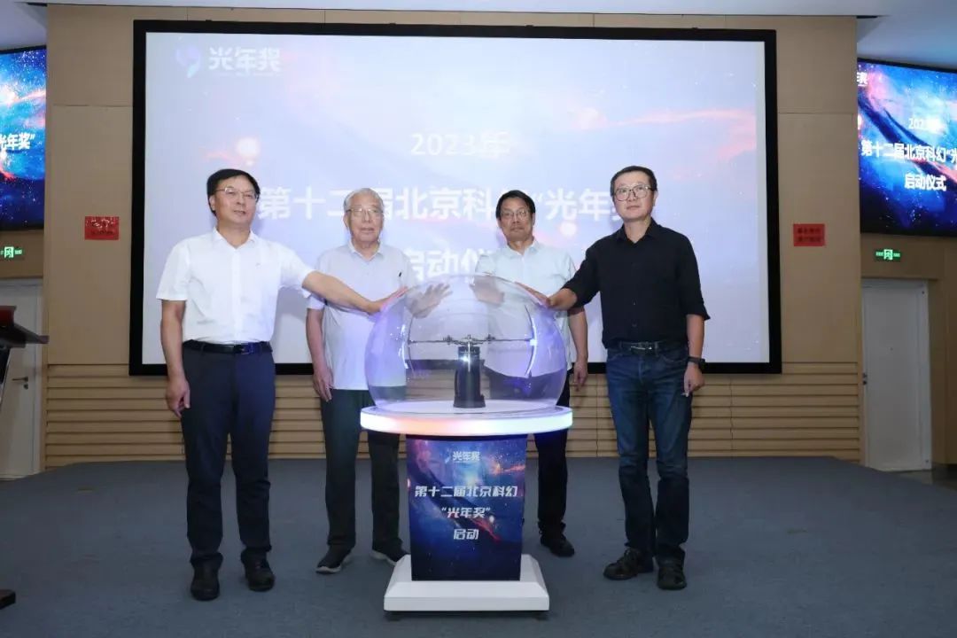 來(lái)自科幻創(chuàng)作、科幻研究、科幻產(chǎn)業(yè)、科幻教育等領(lǐng)域的嘉賓也分別剖析了科幻對(duì)當(dāng)前時(shí)代的意義,鼓勵(lì)公眾積極參與到科幻創(chuàng)作當(dāng)中,通過(guò)北京科幻“光年獎(jiǎng)”平臺(tái)展露光采。隨后,陳維成、尹傳紅、王晉康、劉慈欣上臺(tái),共同啟動(dòng)2023年第十二屆北京科幻“光年獎(jiǎng)”。