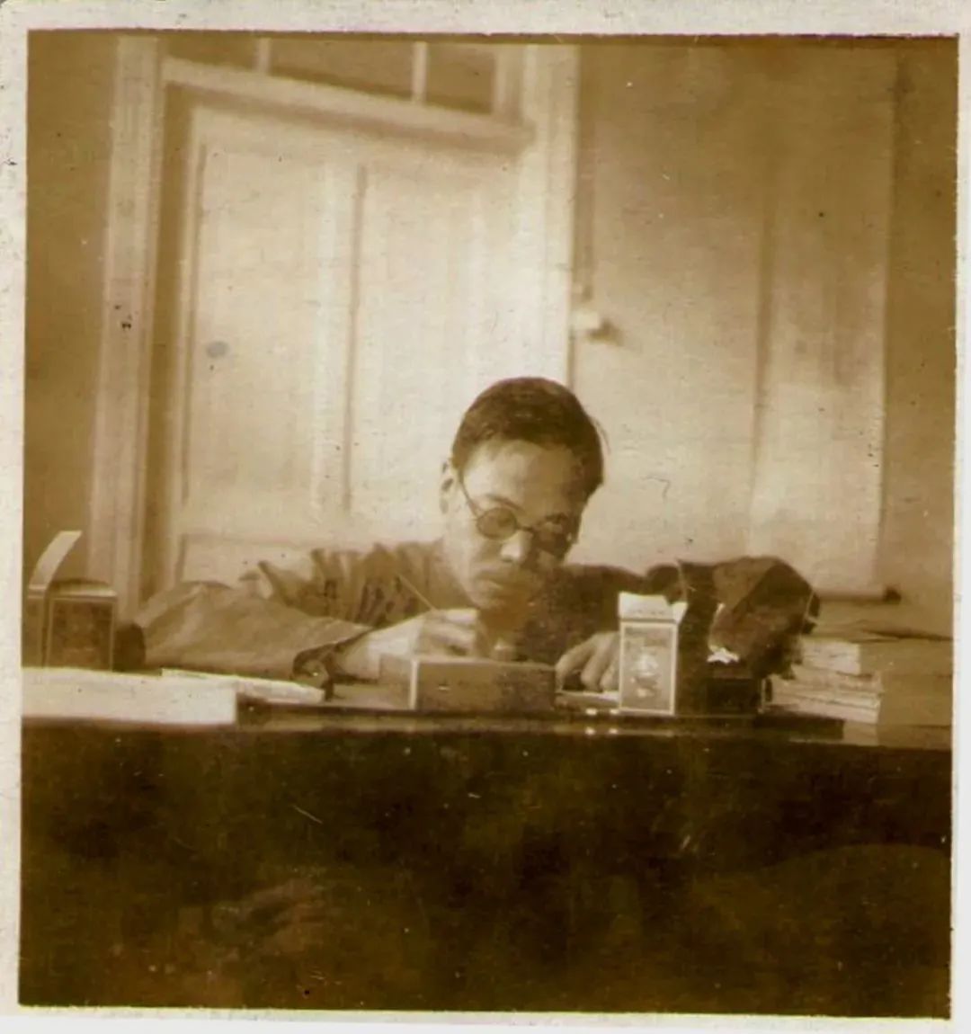 看著我爸這張書桌,就難以抑制我胸中一種特殊的感情,看到這張書桌就仿佛又看到我爸,他終生伏案寫作就是用的這張書桌,從1933年10月和我媽成婚,這是我的外公送給他女婿的唯一一件禮物,我的曾經(jīng)留學美國的外公那時在北京交通廳工作,協(xié)助詹天佑管理北京的鐵路系統(tǒng)。岳父知道這個女婿就是以寫作為生,送的嫁妝就是這張書桌。之后,這張書桌就陪伴了我父親一輩子,從年輕到生命的最后一刻,還總有和我媽的合影: