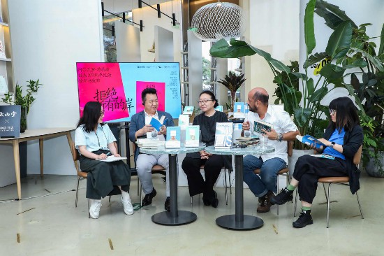這天下午,哥倫比亞書商、文學研究者及作家策展人阿爾瓦羅·卡斯蒂略·格拉納達,學者戴錦華,作家、詩人邱華棟,詩人周瓚,文學編輯張引弘來到北京中信書店啟皓店,以“拒絕所有的岸”為主題,暢談他們眼中的穆蒂斯,并觀看根據(jù)其小說《馬克洛爾的奇遇與厄運》第二部分改編的電影《伊蓮娜在雨中到達》。