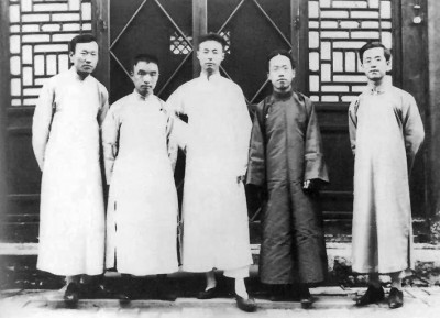 1925年,朱自清與友人在清華園留影,左二為朱自清,左四為俞平伯。初到清華大學(xué)三年,朱自清主要講授“國(guó)文”“古今文選”等課程。資料圖片