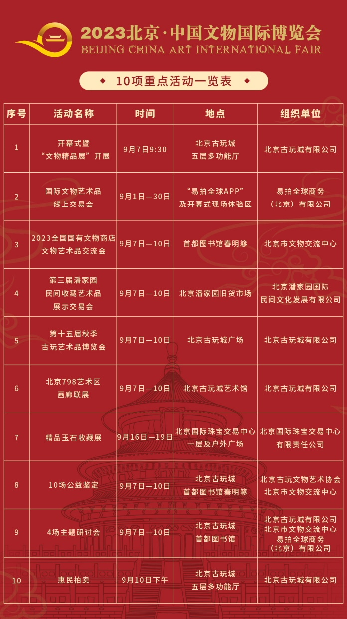 2023文博會由北京古玩城有限公司、北京市文物交流中心、易拍全球商務(wù)(北京)有限公司、北京潘家園國際民間文化發(fā)展有限公司等承辦,緊緊圍繞“收藏:讓人民生活更美好”主題,以推動國際化、提升數(shù)字化、促進生活化為主要抓手,集中在9月推出10項重點活動,通過線上+線下的辦會方式,進一步擴大北京作為國際文物藝術(shù)品交易中心的影響力,體現(xiàn)北京作為文物藝術(shù)品行業(yè)龍頭的城市實力、凝聚力和數(shù)字化交易能力。北京市文物局、北京首都旅游集團有限責(zé)任公司、北京市商務(wù)局、北京市市場監(jiān)管局、北京科技創(chuàng)新促進中心、北京市朝陽區(qū)文化和旅游局等行業(yè)主管部門領(lǐng)導(dǎo)及承辦、協(xié)辦單位負(fù)責(zé)人出席開幕式。