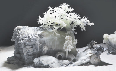 走進(jìn)位于前營(yíng)鎮(zhèn)新屯村的唐帥藝術(shù)館,《家在東北》系列玉雕引人注目。腌酸菜、制作黏豆包等東北民俗,以及銀裝素裹的北國(guó)風(fēng)光被一一雕刻于柔和光潔的岫玉上,傳遞出濃濃鄉(xiāng)愁。為創(chuàng)作這一系列作品,唐帥和團(tuán)隊(duì)多次深入鄉(xiāng)村積累素材,并精選86塊岫玉黑白料,歷時(shí)5年才完成創(chuàng)作?!斑@不僅是一組玉雕作品,也是東北地域文化、人文風(fēng)情的藝術(shù)記錄?!碧茙浾J(rèn)為,“今天的玉雕人有責(zé)任以東方玉文化講好中國(guó)故事。”