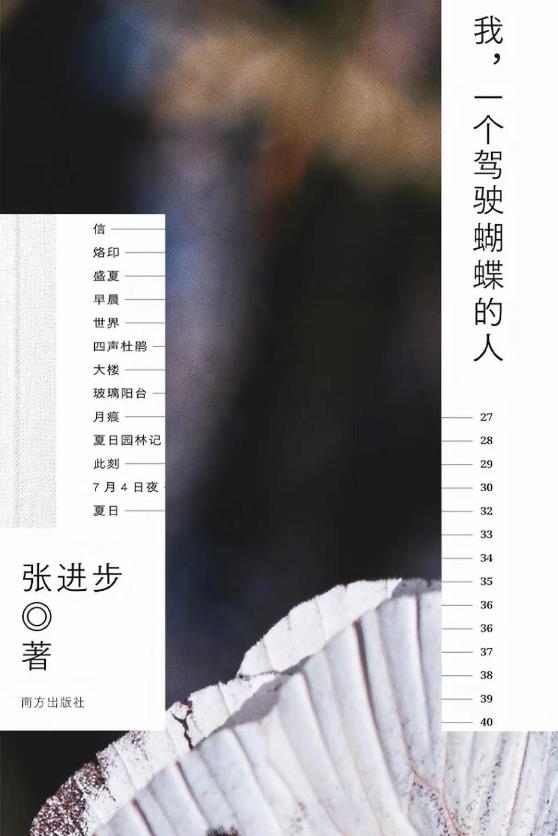 《我,一個駕駛蝴蝶的人》是詩人張進(jìn)步的詩集,收錄了詩人創(chuàng)作的127首短詩、1篇詩學(xué)隨筆、1篇詩人專訪。內(nèi)容分為“菩薩是一陣細(xì)雨”“意象戲劇”“世界和它閃光的部分”“秋夜七弦”四輯。在這本詩集中,作者打破規(guī)則的藩籬,讓萬物紛紛涌入筆下,詩歌的內(nèi)容更加豐富,詩歌的形式也更加自由。其中“秋夜七弦”是一部組詩,每首詩七行,每行都是長句,共20首,每首詩圍繞一兩個核心意象展開,符合詩人對“意象戲劇”的追求。