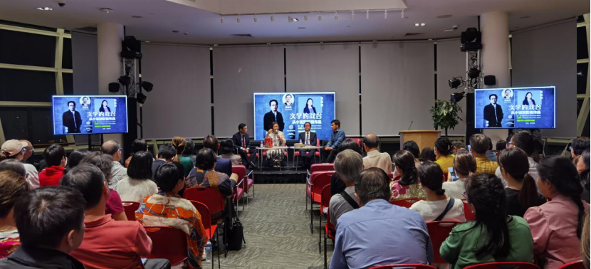 9月8日晚,燈火通明的新加坡國家圖書館。150多位新加坡讀者齊聚一堂,用熱情的掌聲歡迎來訪的中國作家代表團(tuán)。一場(chǎng)期待已久的文學(xué)座談會(huì)在眾人的期待中如期舉行。座談會(huì)主題為《文學(xué)的戲臺(tái)——從小說到影視作品》,主講嘉賓為中國作家陳彥和蔣勝男,對(duì)談嘉賓為新加坡國家文化獎(jiǎng)項(xiàng)主席、長者智庫高級(jí)顧問蔡志禮博士。駐新加坡使館文化參贊秦文等嘉賓出席了活動(dòng)。