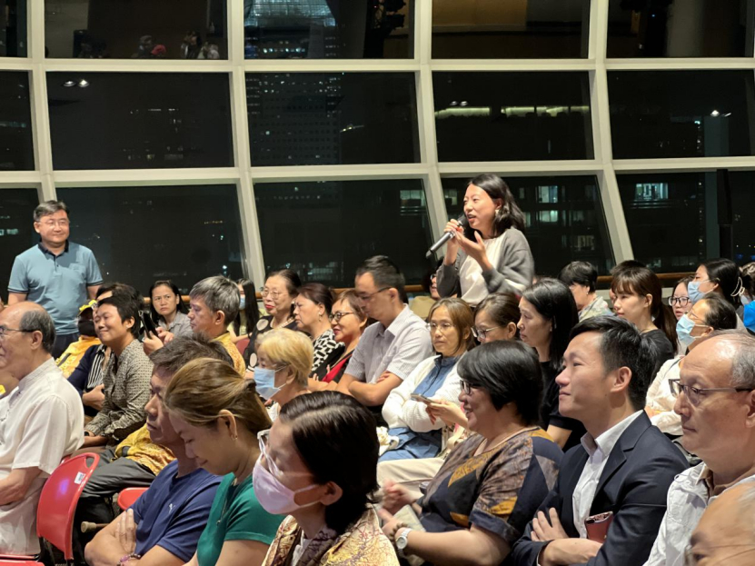 在座談會(huì)提問環(huán)節(jié),新加坡戲曲學(xué)院創(chuàng)院院長蔡曙鵬博士等嘉賓紛紛與中國作家熱烈交流,提出了10多道問題,包括小說到影視作品的改編問題,歷史劇與歷史和虛構(gòu)的關(guān)系,以及作家的社會(huì)責(zé)任等問題等。有多位讀者對(duì)兩位作家作品已經(jīng)非常熟悉,圍繞作品中的細(xì)節(jié)進(jìn)行提問交流,探討作品背后的深層文化思想。兩位作家也都給出了精彩回答。