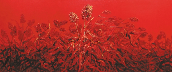 館外,六七個(gè)品種的紅高粱在烈日下或嫵媚或傲然。館內(nèi),劉鐵飛創(chuàng)作的《柔情紅高粱》《野性紅高粱》《大地紅高粱》系列,一幅比一幅令人熱血沸騰。法國(guó)著名藝術(shù)家蓋勒評(píng)價(jià):它與梵高的《向日葵》一樣,充滿了生命的熱情和激情。