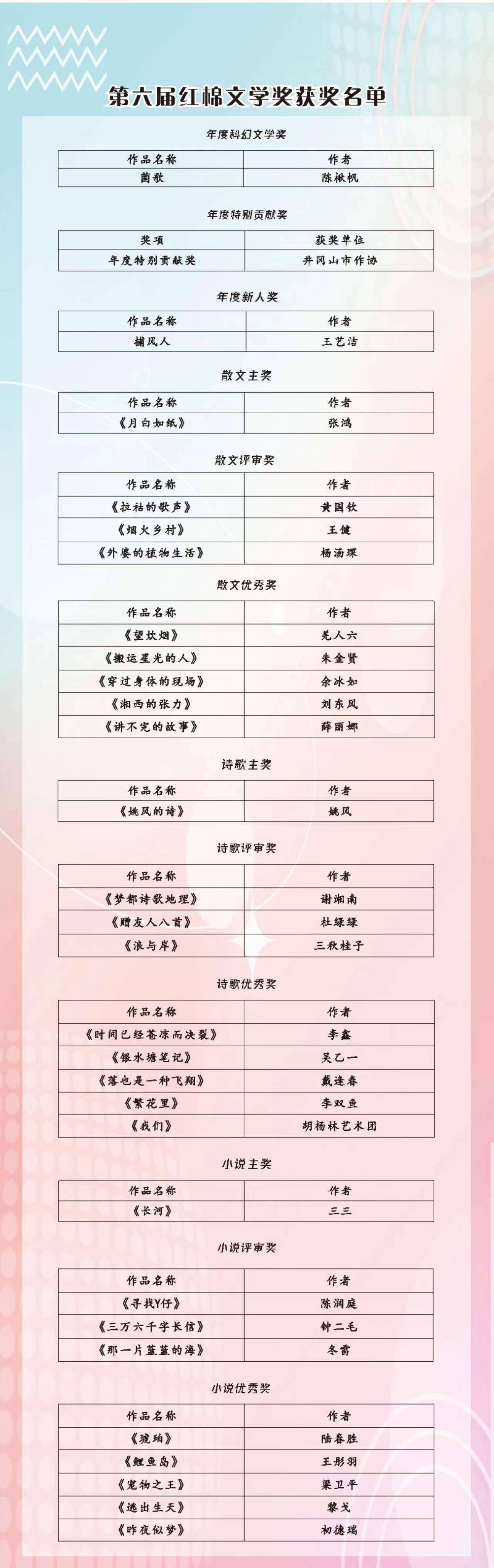 第六屆紅棉文學(xué)獎(jiǎng)獲獎(jiǎng)名單揭曉