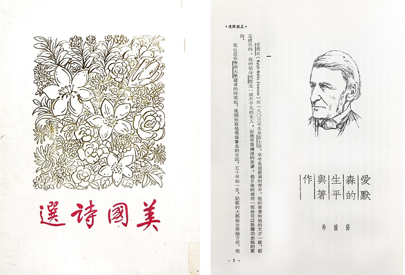 林以亮編選《美國(guó)詩(shī)選》初版書(shū)影;張愛(ài)玲在《美國(guó)詩(shī)選》中譯介愛(ài)默森。
