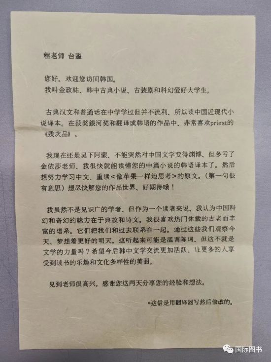本次韓國“中國文學(xué)讀者俱樂部”活動不僅是中韓科幻作家和翻譯家的交流盛會,也為當(dāng)?shù)刂袊膶W(xué)、出版界代表以及對中國語言、文化和科幻文學(xué)感興趣的廣大韓國讀者提供了了解中國文學(xué)、中國作家的難得機(jī)會。嘉賓們的分享不僅讓現(xiàn)場觀眾深入了解科幻創(chuàng)作的特點(diǎn)、邏輯和作家的成長故事,也展現(xiàn)了不同國家、不同文化背景科幻文學(xué)的碰撞與融合。這種跨文化交流對于推動科幻文學(xué)的發(fā)展,增進(jìn)中韓兩國友誼具有重要的意義。