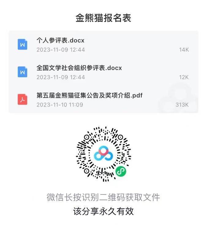 1.下載填寫《第五屆“金熊貓”網(wǎng)絡(luò)文學(xué)獎(jiǎng)個(gè)人作品參評(píng)表》。