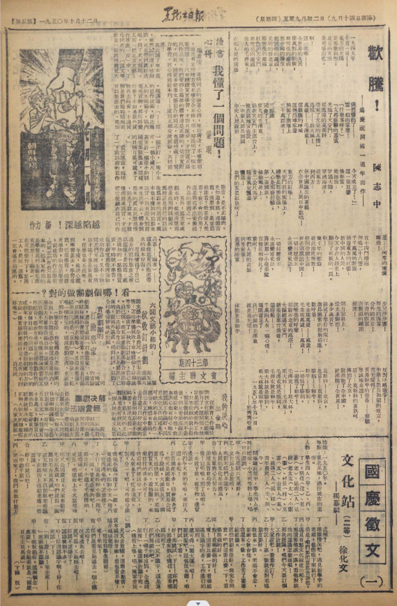 1950年10月12日《黑龍江日報·黑龍江文藝》創(chuàng)刊號第5版