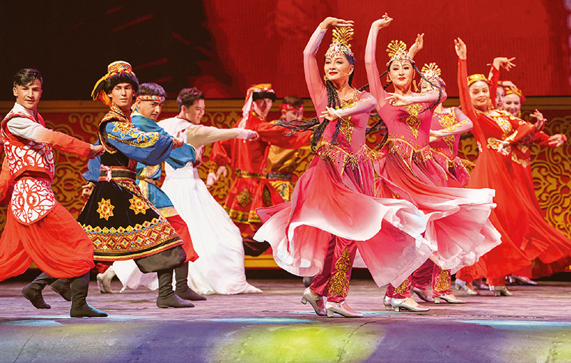 2023年7月20日,第六屆中國新疆國際民族舞蹈節(jié)在烏魯木齊開幕。本屆舞蹈節(jié)以“舞動(dòng)夢想 和美絲路”為主題。圖為演員在開幕式上表演。 新華社記者 胡虎虎/攝