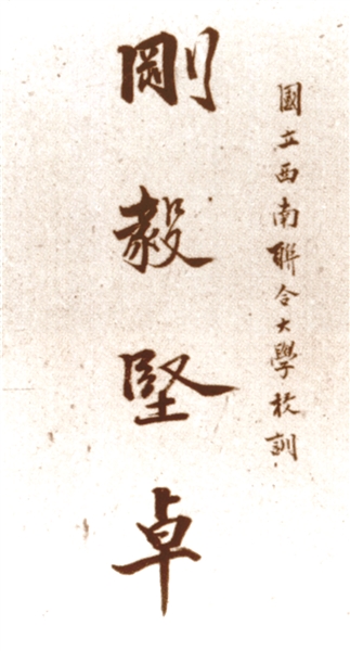 從此,“剛毅堅(jiān)卓”成為聯(lián)大師生引以為豪的共同價(jià)值追求和共同遵循的辦學(xué)樹人目標(biāo)。至于“共同之國(guó)訓(xùn)”及一年后蔣介石親書的另一個(gè)“共同校訓(xùn)”的制匾懸掛,聯(lián)大并未照辦。