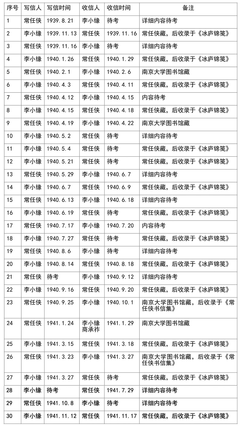 常任俠撰寫上信時,正身處重慶,李小緣先生則在成都,1939年至1940年間,川渝間通信尚算正常,平信基本一周左右遞達(dá),而航空信更是只需三天左右便能送達(dá)。這從《常任俠書信集》、《冰廬錦箋》中往來書信也能看出,筆者結(jié)合《常任俠書信集》、《冰廬錦箋》兩書以及常任俠戰(zhàn)時日記,大致梳理了兩人書信往來情況,如下表所示: