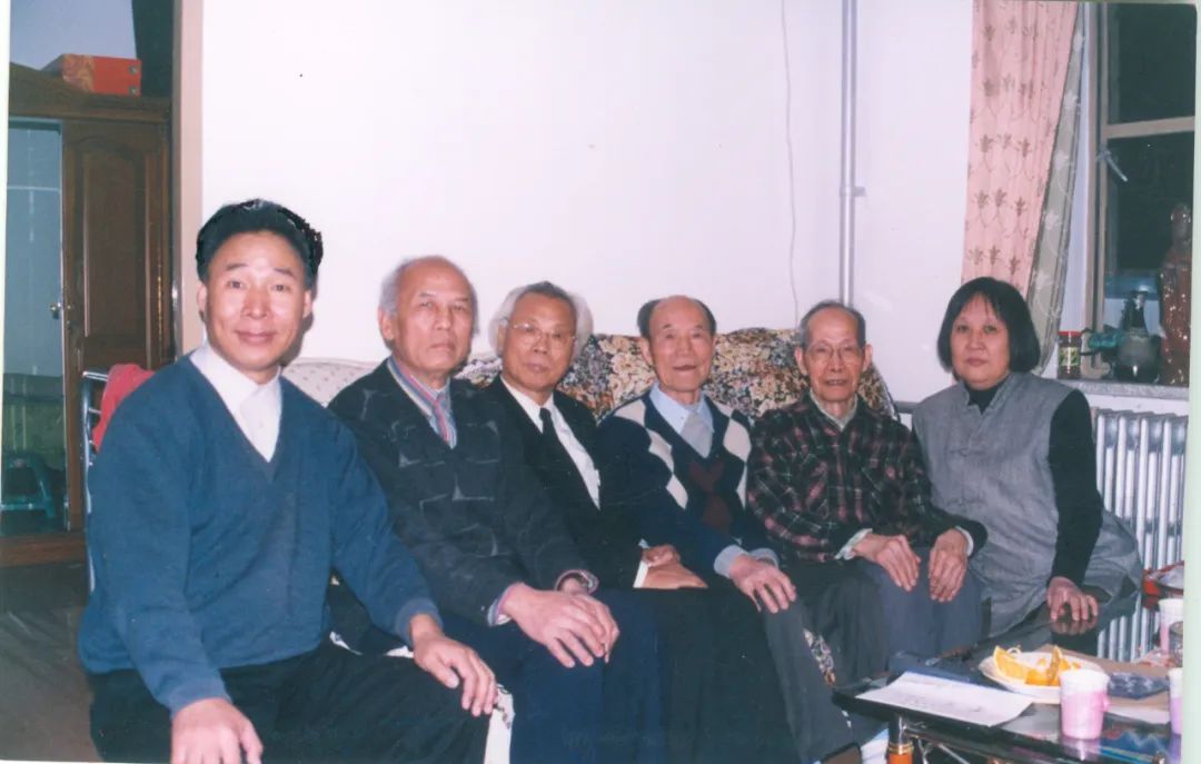 2001年12月,賈芝(右二)與白庚勝(左一)、楊亮才(左二)、劉魁立(左三)、王平凡(右三)、金茂年(右一)合影