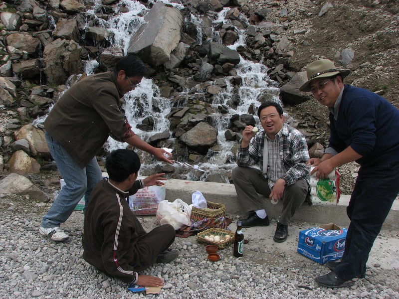鐘揚(yáng)(右三)率團(tuán)隊(duì)在青藏高原進(jìn)行野外考察
