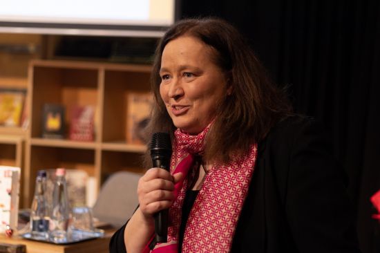 圖為匈文版《吃瓜時(shí)代的兒女們》譯者宗博莉·克拉拉主持讀書分享會(huì)