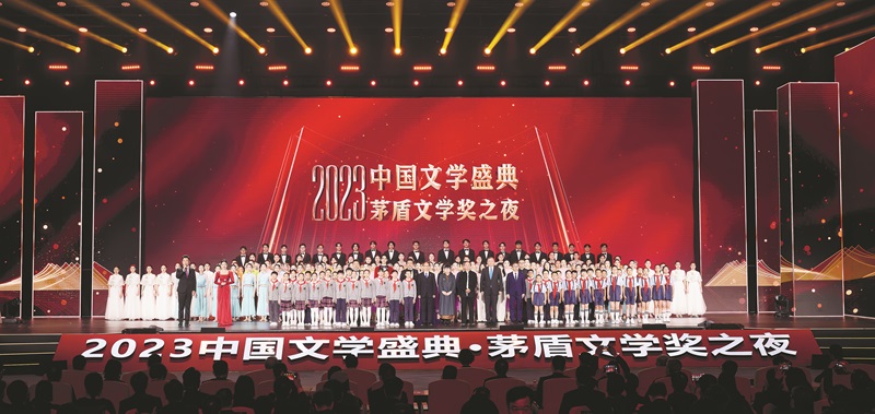 11月19日晚,“2023中國(guó)文學(xué)盛典·茅盾文學(xué)獎(jiǎng)之夜”在茅盾先生故鄉(xiāng)浙江桐鄉(xiāng)烏鎮(zhèn)舉行。獲得第十一屆茅盾文學(xué)獎(jiǎng)的5位作家楊志軍、喬葉、劉亮程、孫甘露、東西在隆重?zé)崃业念C獎(jiǎng)典禮上領(lǐng)受中國(guó)文學(xué)的最高榮譽(yù),億萬(wàn)觀眾通過(guò)電視和網(wǎng)絡(luò)平臺(tái)直播第一時(shí)間見(jiàn)證了新時(shí)代文學(xué)又一備受矚目的高光時(shí)刻。盛典形成強(qiáng)大的“破圈跨界”效應(yīng),激發(fā)了文學(xué)活力,進(jìn)一步喚起全社會(huì)對(duì)文學(xué)的熱情與關(guān)注,凝聚起更加磅礴的文學(xué)力量。圖為“茅盾文學(xué)獎(jiǎng)之夜”現(xiàn)場(chǎng)。(本版照片均為資料圖片)