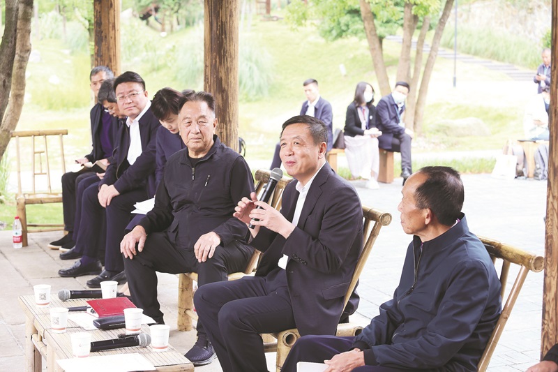 中國(guó)作協(xié)在湖南益陽(yáng)清溪村深入挖掘文學(xué)資源,廣泛匯聚文化力量,全力打造“中國(guó)文學(xué)第一村”和“文學(xué)之鄉(xiāng)”,積極探索建立以文學(xué)賦能鄉(xiāng)村振興的“清溪模式”,在清溪村注入更多文學(xué)活力和文學(xué)能量。圖為5月22日,中國(guó)作協(xié)黨組書(shū)記、副主席張宏森(右二)與清溪村村民交流。