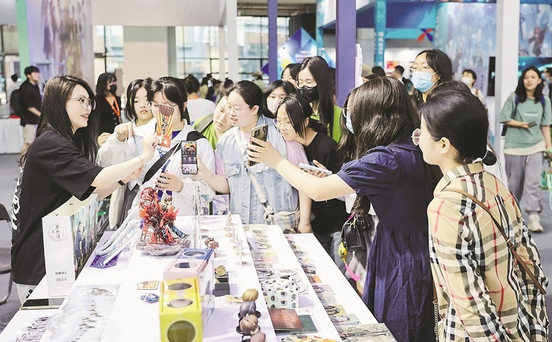 為促進(jìn)網(wǎng)絡(luò)文學(xué)的主流化、精品化創(chuàng)作和海外傳播,中國(guó)作協(xié)舉辦了“2023中國(guó)國(guó)際網(wǎng)絡(luò)文學(xué)周”、2023中國(guó)網(wǎng)絡(luò)文學(xué)論壇等活動(dòng),扶持40項(xiàng)網(wǎng)絡(luò)文學(xué)重點(diǎn)選題,發(fā)布了2021和2022年度中國(guó)網(wǎng)絡(luò)文學(xué)影響力榜,實(shí)施網(wǎng)絡(luò)科幻文學(xué)創(chuàng)作扶持計(jì)劃等,有力地推動(dòng)了網(wǎng)絡(luò)文學(xué)的高質(zhì)量發(fā)展。圖為“2023中國(guó)國(guó)際網(wǎng)絡(luò)文學(xué)周”期間舉辦的網(wǎng)絡(luò)文學(xué)產(chǎn)業(yè)博覽會(huì)現(xiàn)場(chǎng)。