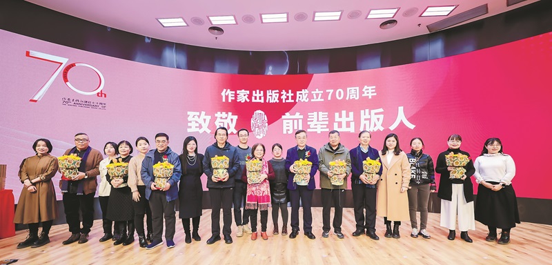 自1953年成立以來(lái),作家出版社走過(guò)了70年不平凡歷程,用一部部經(jīng)典文學(xué)作品鋪就了輝煌的成長(zhǎng)發(fā)展之路。作為我國(guó)文學(xué)出版事業(yè)的重要陣地,近年來(lái),作家出版社堅(jiān)持以習(xí)近平新時(shí)代中國(guó)特色社會(huì)主義思想為指引,加強(qiáng)現(xiàn)實(shí)題材出版規(guī)劃,出版了一大批膾炙人口、催人奮進(jìn)的時(shí)代經(jīng)典,為推動(dòng)新時(shí)代文學(xué)繁榮發(fā)展作出了重要貢獻(xiàn)。圖為11月30日舉行的作家出版社成立70周年座談會(huì)上,作家出版社青年編輯向老同志代表獻(xiàn)上鮮花。