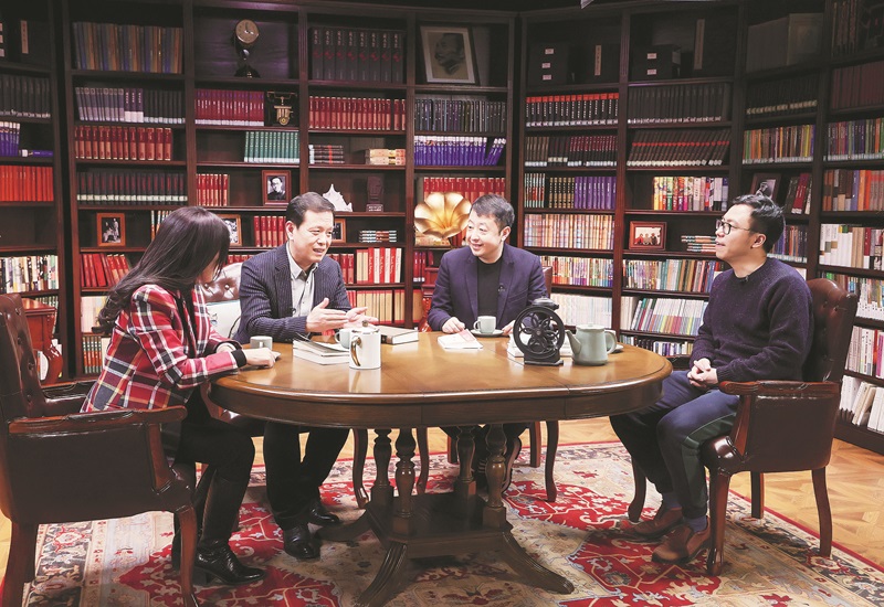 2023年,中國(guó)作協(xié)深化與國(guó)家廣電總局的戰(zhàn)略合作,建立與北京市廣播電視局、北京電影學(xué)院等單位的常態(tài)化合作機(jī)制,不斷拓展與省級(jí)衛(wèi)視、芒果TV、快手、愛(ài)奇藝、抖音等影視機(jī)構(gòu)、互聯(lián)網(wǎng)平臺(tái)的合作,向首屆中國(guó)電視劇大會(huì)、首屆中國(guó)紀(jì)錄片大會(huì)、首屆北京網(wǎng)絡(luò)視聽(tīng)藝術(shù)大會(huì)推薦優(yōu)秀文學(xué)作品,一年來(lái)通過(guò)多種渠道推薦文學(xué)作品近800部。圖為由中國(guó)現(xiàn)代文學(xué)館策劃、騰訊視頻播出的文化漫談節(jié)目《文學(xué)館之夜》。