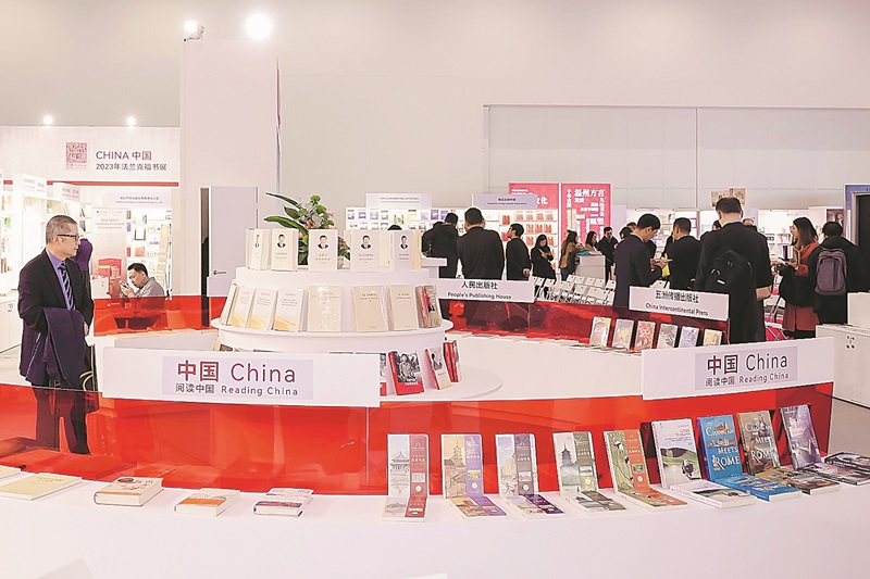2023年,中國(guó)作協(xié)廣泛參與世界文化交流對(duì)話,不斷擴(kuò)大“朋友圈”,推動(dòng)更多體現(xiàn)中國(guó)精神、中國(guó)價(jià)值的文學(xué)精品走出去。在“一帶一路”倡議提出十周年之際,舉辦東盟青年作家中國(guó)行活動(dòng);先后組織中國(guó)作家代表團(tuán)出訪馬來(lái)西亞、新加坡、印度尼西亞和匈牙利、意大利、德國(guó),參加第75屆法蘭克福書(shū)展,啟動(dòng)“中國(guó)文學(xué)世界行”并舉辦作品推介活動(dòng);舉辦中國(guó)文學(xué)國(guó)際傳播論壇暨第六次漢學(xué)家文學(xué)翻譯國(guó)際研討會(huì),英、美、德等24國(guó)的32位漢學(xué)家、翻譯家參加活動(dòng)。圖為法蘭克福書(shū)展上的中國(guó)展區(qū)。