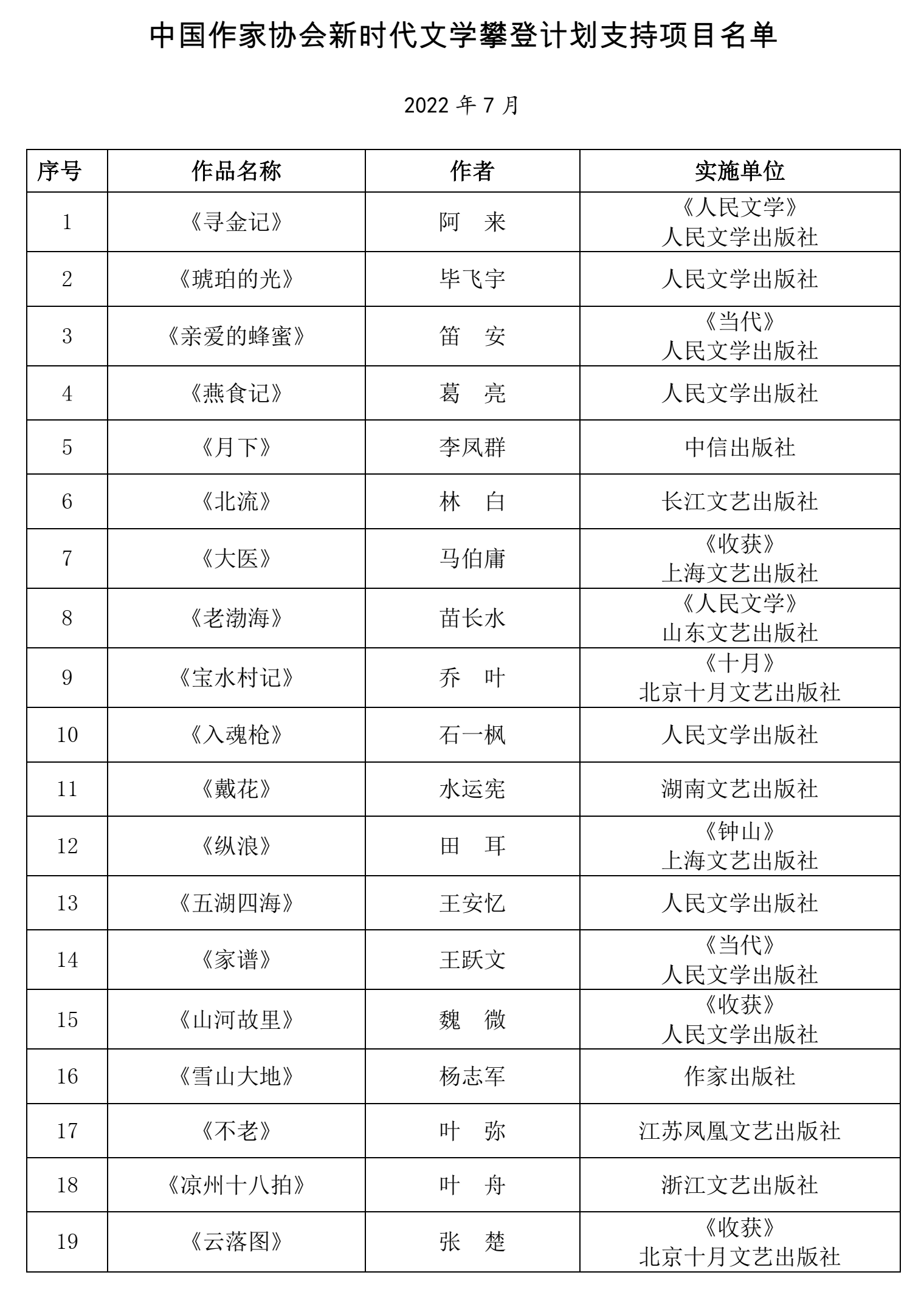 中國(guó)作家協(xié)會(huì)新時(shí)代文學(xué)攀登計(jì)劃首批支持項(xiàng)目名單