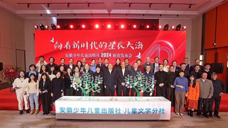 1月10日,“向著新時(shí)代的星辰大?!不丈倌陜和霭嫔?024年新春發(fā)布會(huì)”在北京舉辦。安徽省委宣傳部副部長(zhǎng)方曉利,兒童文學(xué)作家、詩(shī)人、中國(guó)作家協(xié)會(huì)原副主席高洪波,國(guó)際兒童讀物聯(lián)盟中國(guó)分會(huì)原主席、中國(guó)出版工作者協(xié)會(huì)原副主席海飛,安徽省委宣傳部出版管理處傳媒監(jiān)管處處長(zhǎng)王圣東,安徽省委宣傳部印刷發(fā)行處處長(zhǎng)劉凱,安徽出版集團(tuán)有限責(zé)任公司黨委委員,時(shí)代出版?zhèn)髅焦煞萦邢薰究偨?jīng)理鄭可,安徽出版集團(tuán)有限責(zé)任公司黨委委員、副總經(jīng)理兼總編輯朱寒冬,時(shí)代出版?zhèn)髅焦煞萦邢薰军h委委員、副總經(jīng)理丁凌云,時(shí)代出版?zhèn)髅焦煞萦邢薰军h委委員、副總經(jīng)理兼副總編輯張堃,以及束沛德、張之路、馬光復(fù)、徐德霞、劉海棲、鞠萍、陳暉、李東華、徐魯、納楊、馬衛(wèi)東、伍美珍、陳磊、郁雨君、曾有情、薛濤、翌平、安武林、星河、黃春華、孫衛(wèi)衛(wèi)、王林、含碧、崔昕平、馮臻、陳香、商曉娜、李?yuàn)檴?、于瀟湉、吳洲星、郭妮、馬鵬浩、李潔等兒童文學(xué)作家和評(píng)論家等200余人出席推介會(huì)。