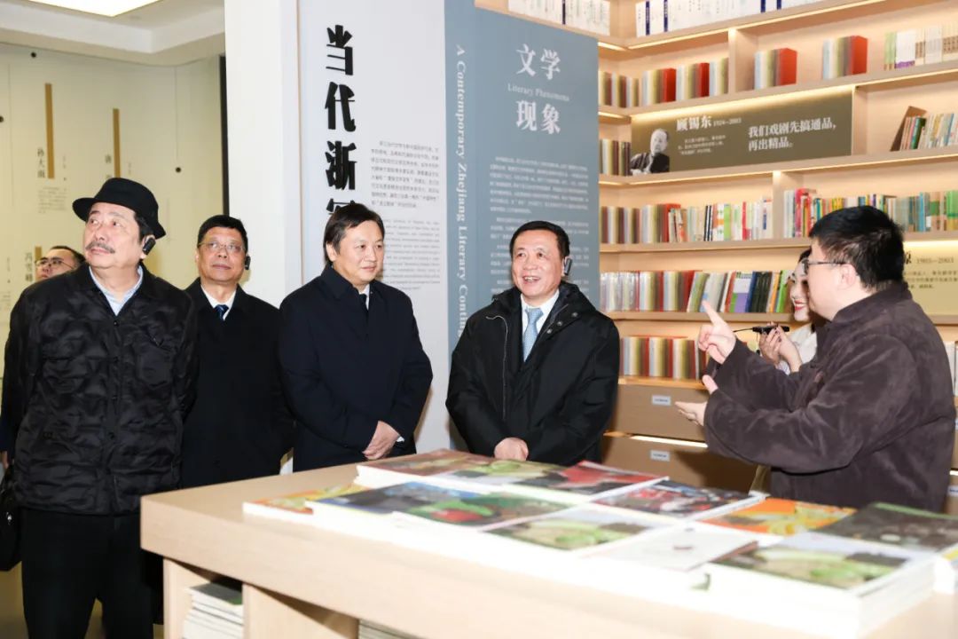 隨后,張宏森一行考察調(diào)研了“浙水敷文——浙江古代文學(xué)”展廳、宋韻浙江經(jīng)典作品場景體驗廳、現(xiàn)代浙江經(jīng)典作品場景體驗廳、文學(xué)數(shù)字應(yīng)用體驗廳和兒童文學(xué)體驗廳。