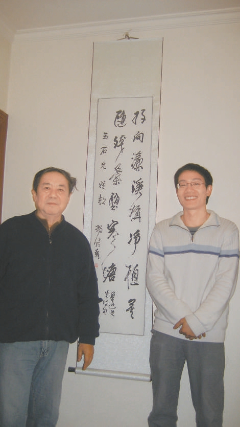而記憶從灰燼里重生了一點(diǎn)點(diǎn),想起了采訪的前一年12月25日和幾位同學(xué)去孫先生家里拜訪,先生給我們展示他收藏的貓頭鷹擺件,介紹掛在墻上的字,是著名的魯迅研究專家衛(wèi)俊秀寫的魯迅早年的句子,“須向濂溪稱凈植,莫隨殘葉墮寒塘”。同學(xué)們拍貓頭鷹的拍貓頭鷹,拍書法的拍書法,又紛紛與先生合影,翻看先生的家藏影集,看先生在《孫玉石文集》上題簽,之后各抱著一套先生饋贈(zèng)的文集離開(kāi)。文集饋贈(zèng)當(dāng)然不是毫無(wú)理由,先生是感激我們分擔(dān)了先生文集發(fā)布會(huì)的會(huì)務(wù)工作。