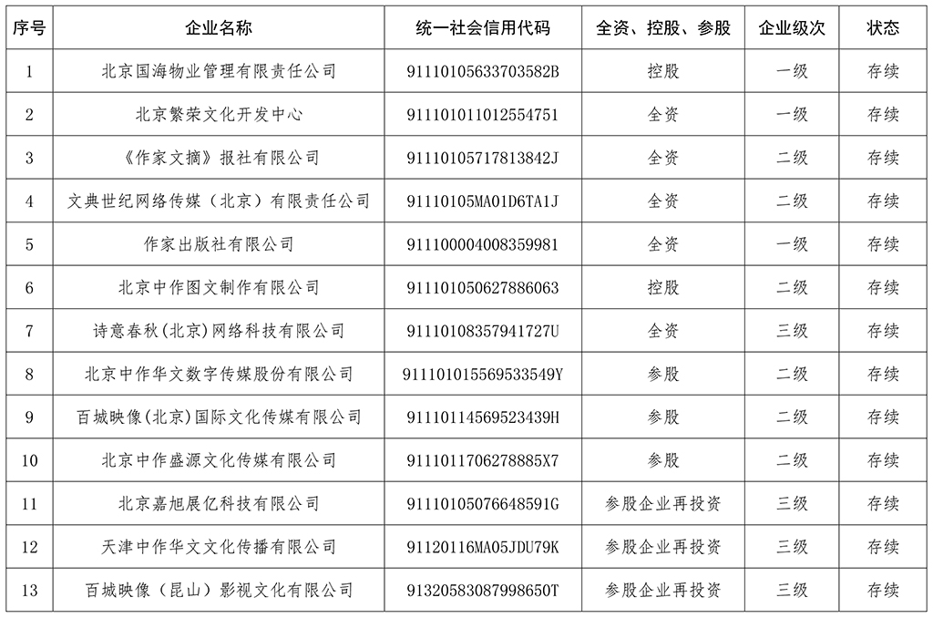 中國(guó)作家協(xié)會(huì)企業(yè)名單