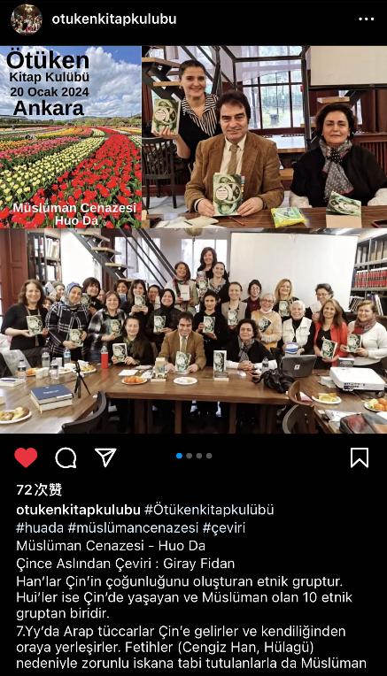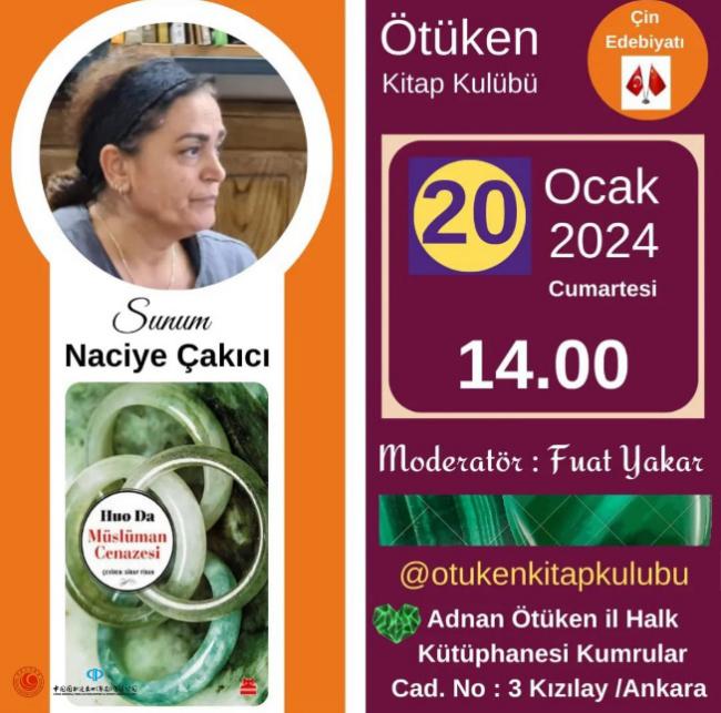 近日,由中國作家協(xié)會外聯(lián)部指導,中國圖書進出口(集團)有限公司和土耳其“中國文學讀者俱樂部”聯(lián)合土耳其于都斤 (?tüken)讀書俱樂部共同組織的《穆斯林的葬禮》讀書分享會在土耳其成功舉辦。于都斤讀書俱樂部負責人富阿特·亞卡爾、土耳其民俗學家納齊耶·恰基奇作為嘉賓參加活動并圍繞該書的文化背景、故事情節(jié)、哲學思想等進行分享。當?shù)刈骷摇⑽幕囆g家和讀者等共40多人參加了此次活動。