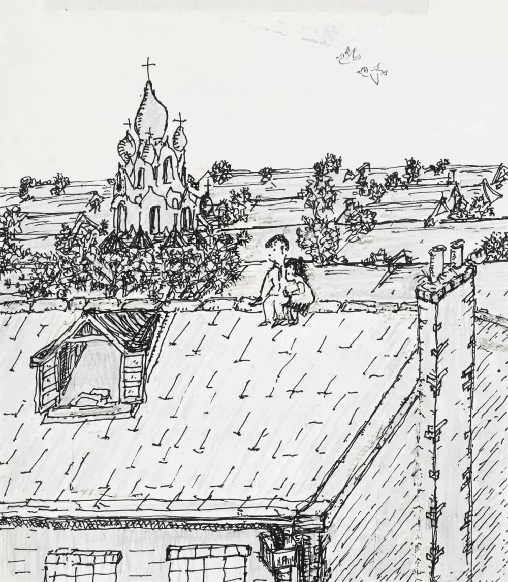 《繁花》插圖1,2012,紙本水筆 13×14.5cm,原作在東一美術(shù)館展出。