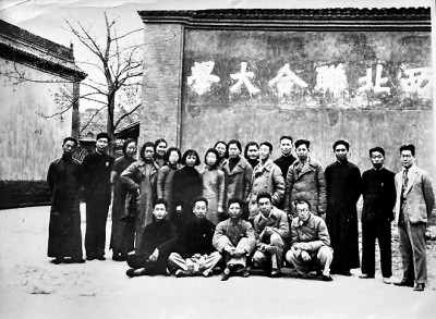 西北聯(lián)合大學(xué)學(xué)生在校名影壁前合影。 資料圖片