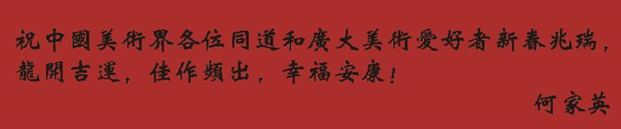 5、中國美術家協(xié)會原副主席 何家英:祝中國美術界各位同道和廣大美術愛好者新春兆瑞,龍開吉運,佳作頻出,幸福安康!
