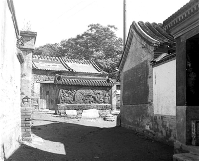 鐵影壁遷移后,列置于北海一隅舊影,攝于1949年前后 |