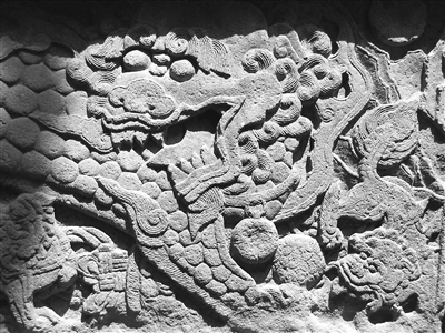 須知,以龍為主圖裝飾的影壁,在北京、山西等地并不少見,什么九龍、五龍、三龍、獨(dú)龍壁,至今仍存有相當(dāng)數(shù)量??蛇@里刊發(fā)出來的“北京某處關(guān)帝廟前之影壁”圖片,明確稱其為“石刻之龍”,這就與現(xiàn)存的、幾乎全部為磚砌成壁、琉璃塑像工藝的影壁有很大區(qū)別了。