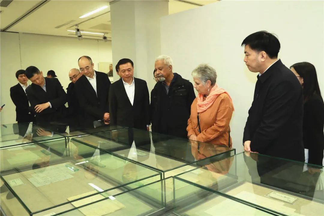 古爾納一行參觀現(xiàn)代文學(xué)館內(nèi)陳設(shè)的名家手稿展