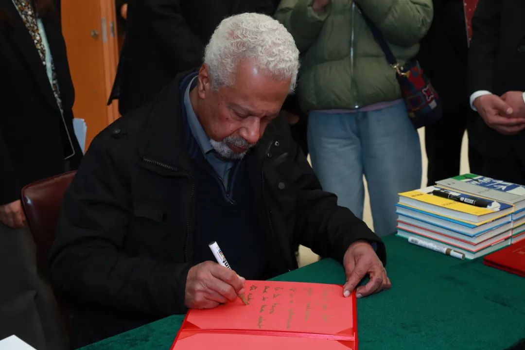 古爾納向中國(guó)現(xiàn)代文學(xué)館捐贈(zèng)了十部作品的中譯本,并在作家書房門口簽名留言