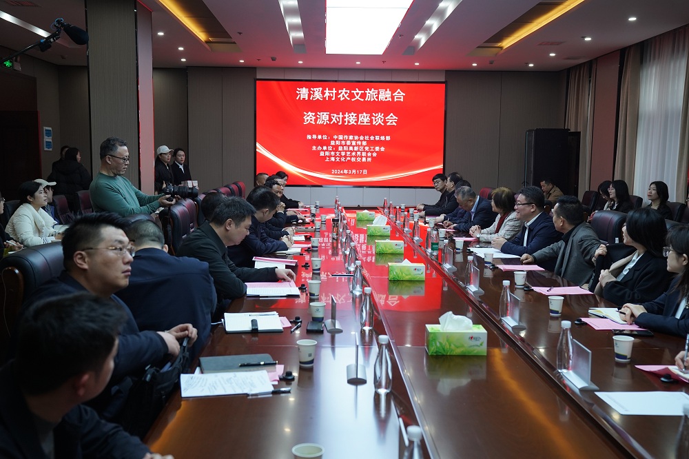 3月17日上午,由中國作協(xié)社聯(lián)部和益陽市委宣傳部作為指導(dǎo)單位的清溪村農(nóng)文旅融合資源對接會,在清溪村游客之家舉行。該會旨在深入貫徹落實習(xí)近平總書記重要指示批示精神,助力鄉(xiāng)村振興,建設(shè)并宣傳好“文學(xué)村莊”典型,讓當(dāng)?shù)乩习傩障碛懈嗟男腋8泻瞳@得感。老藤、王躍文、王松、李鳳群等著名作家,與來自中宣部文藝局、上海文化產(chǎn)權(quán)交易所、中國小說學(xué)會、中國丁玲研究會、中國寓言文學(xué)研究會、浙江溫州洞頭區(qū)、浙江出版集團(tuán)數(shù)字傳媒有限公司、鄉(xiāng)創(chuàng)科技集團(tuán)的代表,同益陽市委市政府及清溪作家書屋村民代表,圍繞文學(xué)如何賦能鄉(xiāng)村振興,怎樣擦亮“文學(xué)村莊”名片,促進(jìn)清溪村精神文明與物質(zhì)文明共同富裕等,開展座談。座談會由中國作協(xié)社聯(lián)部主任李曉東主持。