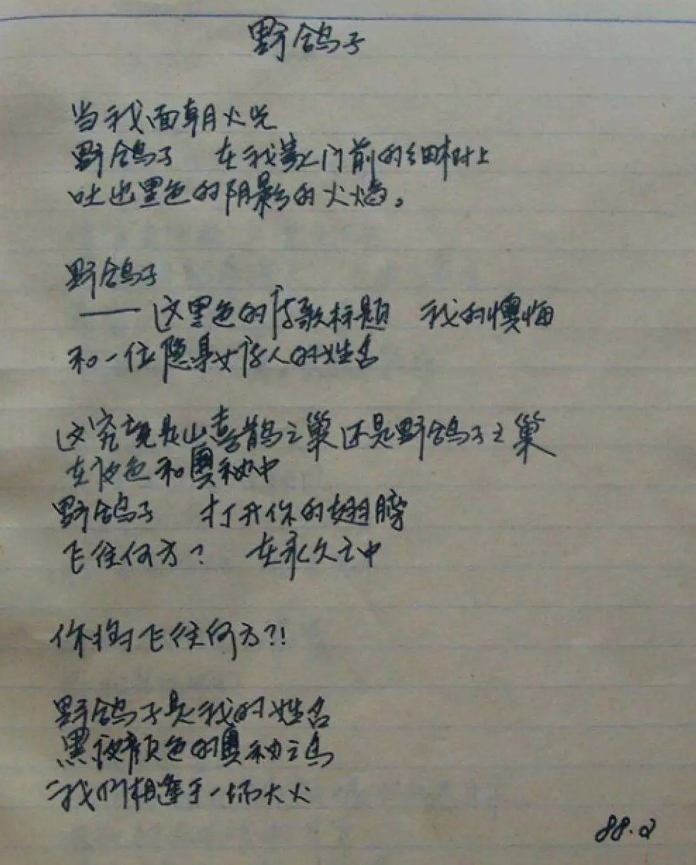 海子這篇寫于1985年10月的文章,是他生前為數(shù)不多的詩歌評論,同時也是一篇被《海子詩全集》漏收的佚文。盡管此文目前呈現(xiàn)的內(nèi)容殘缺不全,但從字里行間依然能看出海子獨特的評論才華,海子熟練地運用散文筆法寫作詩歌評論,使這篇詩歌評論具有了不一樣的風(fēng)格和文本魅力。